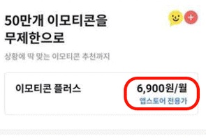 아이폰 인앱으로 카카오톡 이모티콘 플러스 결제할 때 6,900원