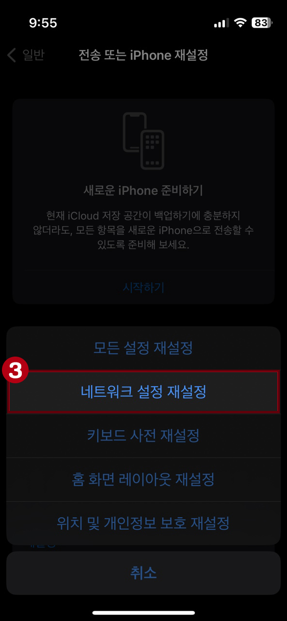 다만 해당 방법은 저장된 Wifi 비밀번호, 네트워크 설정이 모두 삭제되기 때문에 이 점 참고하여 진행하시기 바랍니다