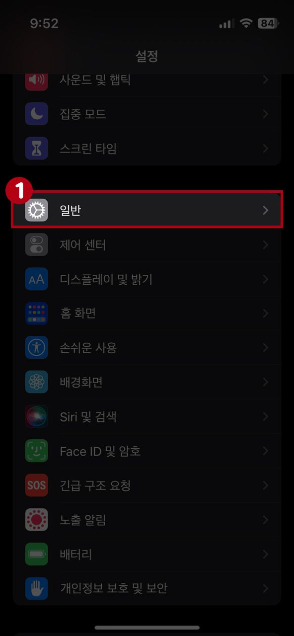 1. [일반] - [전송 또는 Iphone 재설정] 버튼을 클릭하시기 바랍니다