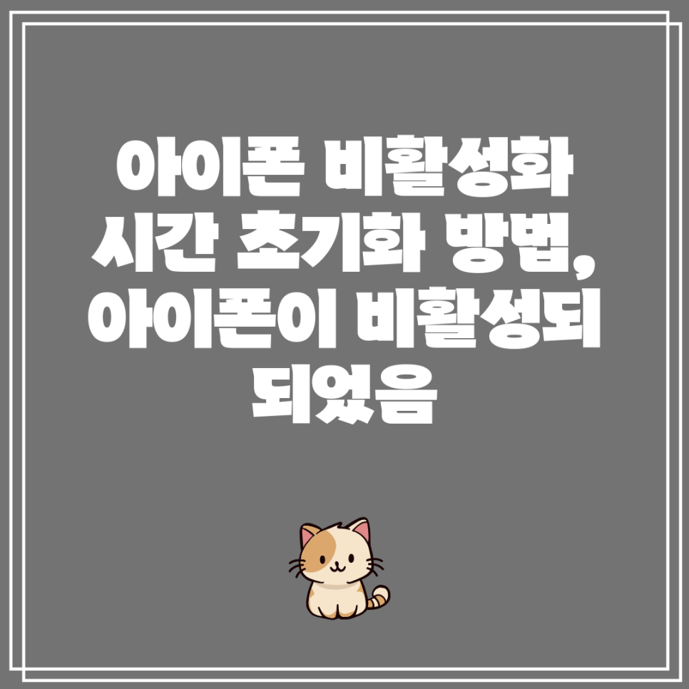 ## 아이폰 비활성화 시간 초기화 방법, 아이폰이 비활성화 되었음 ? 안녕하세요! 혹시 아이폰이 비활성화 되어서 난감하신가요? ? 저도 예전에 비슷한 경험을 했었는데, 생각보다 쉽게 해결할 수 있었어요. 이 글에서는 아이폰 비활성화 시간을 초기화하는 방법에 대해 알려드릴게요! 함께 아이폰을 다시 활성화시켜 봅시다! ?