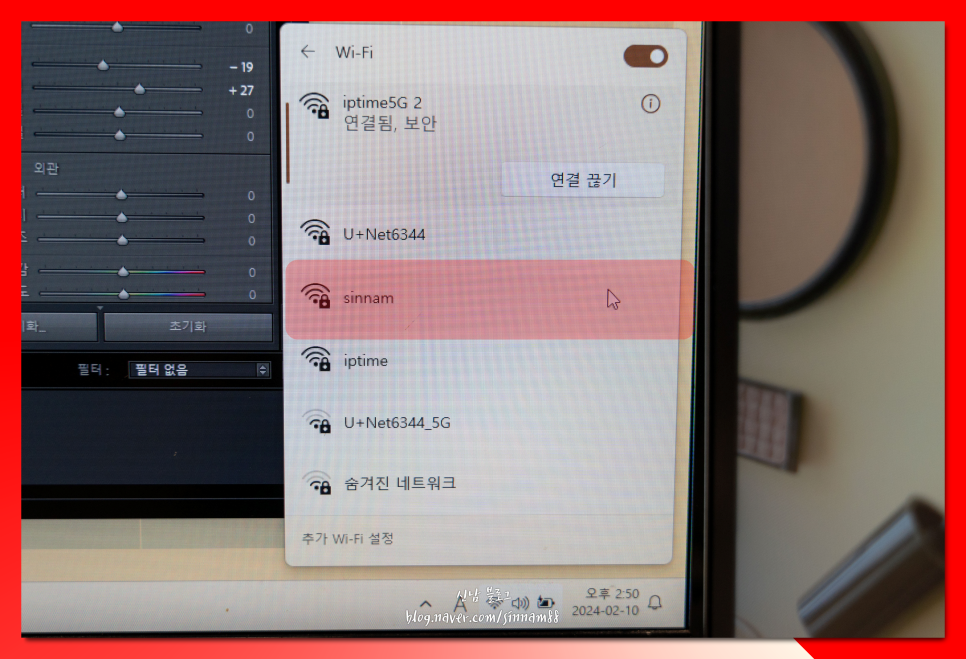 8. 노트북에서 아이폰 핫스팟 연결 설정 사용을 하고 싶다면, 일반 와이파이를 이용했던 것과 동일하게 <네트워크 목록>에서 <스마트폰 이름>을 찾아주시면 됩니다.