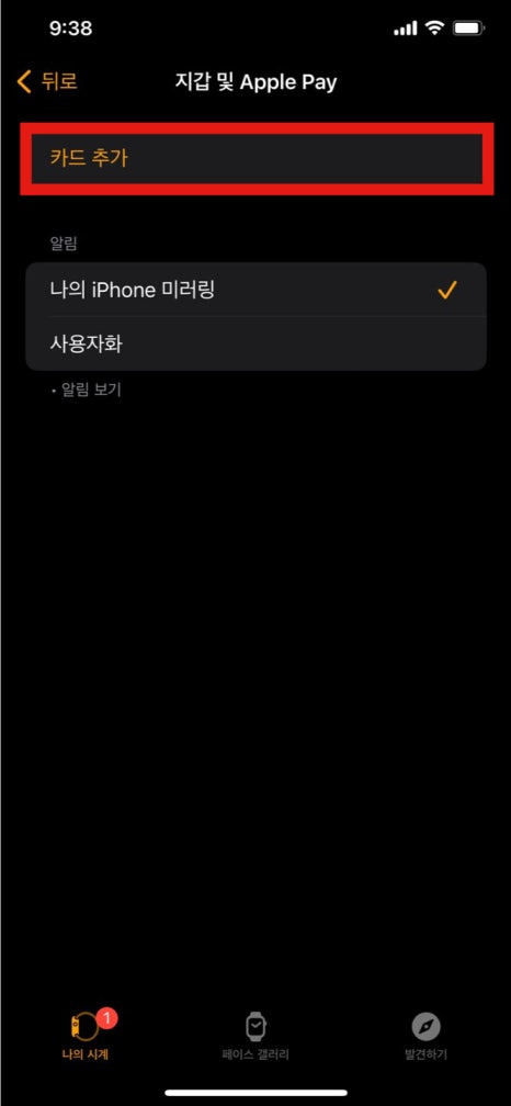 필자는 애플워치에 추가해 보았습니다.